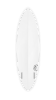 This design is a pure high-performance twin fin in terms of rocker and concaves but in combination with a 70’s style flyer pin-tail planshape. The flyer and pintail both reduce the tail area which is highly suited to twin-fin surfing, even though many twin fins are made with big wide fishtails that are difficult to control and fit into the wave face. The double concave provides significant grip, which is always a benefit of the twin fin concept. Plan shapes are close to a normal performance shortboard with only a moderate increase in the nose area to create a slightly more parallel plan shape between the feet. Can be used as a dedicated twin or with the addition of a tail fin plug for a flexing keel or small stabiliser fin.