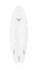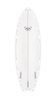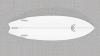 The Syrena model has a similar entry rocker to the Catfish but with a wider swallowtail and stinger, in combination with a double concave between the feet. The two concaves are separated by a rolled V at the stringer. This roll gives a degree of forgiveness at the initial stage of the turn, and also between turns, but then the more that pressure is applied to the rail, the more the side concaves grip into the wave face to give great acceleration.